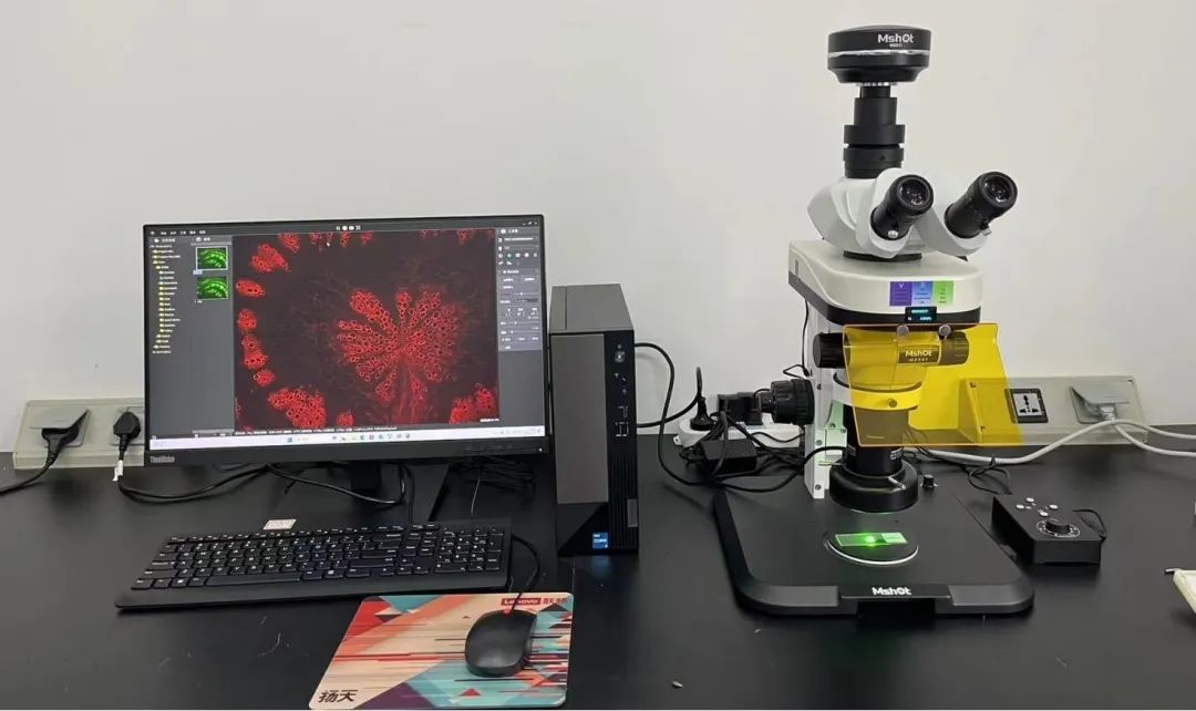 荧光显微镜利用荧光物质在紫外光或蓝光激发下发出可见光的原理进行成像。它具有高灵敏度、高分辨率和特异性染色等特点,能够准确地区分不同的植物组织和细胞结构。