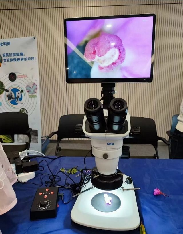 活动现场,Mshot明美精心准备了两款一体式数码显微镜,分别由体视显微镜MZ62、生物显微镜ML11搭配一体式平板相机MD28-A组成,不仅可以从目镜观察,还能在平板屏幕上同步显示镜下图像,新奇体验不仅让孩子们能够亲身感受科技的魅力,更在游玩中学习了科学知识,探索了神秘的微观世界。