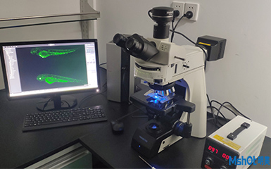 斑马鱼是相当常见的一种热带观赏鱼,因其体型苗条,身上分布有美丽的条纹,故称为斑马鱼,斑马鱼可用于医学研究,对治愈人类耳聋和失明有明显的作用,而被广泛应用于医学研究。上海市公共卫生临床联系我们需要荧光显微镜对斑马鱼进行观察研究.