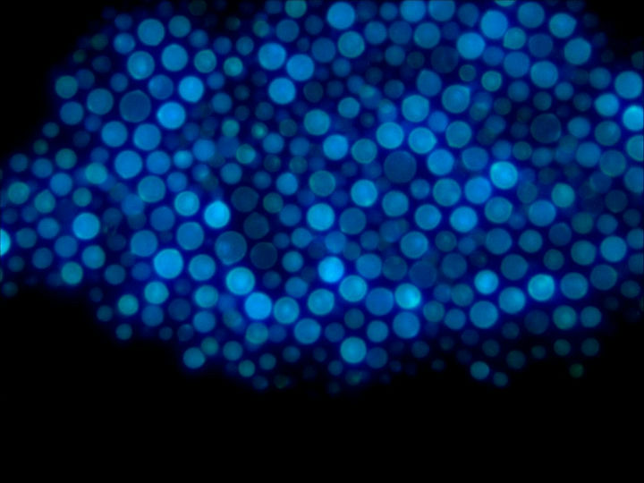 在荧光显微镜下,烟曲霉的顶囊清晰,荧光成像信噪比高、对比度强