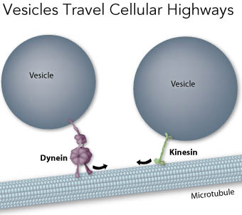 细胞内细胞器的定位、迁移和胞内物质运输,依赖于马达蛋白和微管(Microtubule,简称MT)的相互作用,前者相当于“车辆”,而后者相当于“高速公路”。2013年詹姆斯·罗斯曼、兰迪·谢克曼和托马斯·聚德霍夫3位科学家因发现细胞中囊泡转运机制,获得了2013年诺贝尔生理学或医学奖。