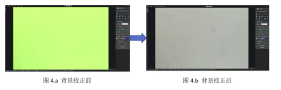 由于显微镜光源与相机默认设置的差异,软件成像背景可能出现偏色(如发黄、泛蓝等),如图1所示。此类问题属于正常现象,可通过软件内置工具快速校正。