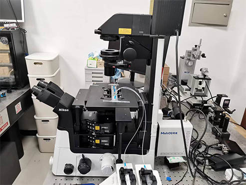 用户已有尼康TI2-U显微镜,用来观看聚乙烯小球样品,用于多光谱材料方向研究,需要长寿命的荧光光源来做荧光样品的显微激发。明美工程师推荐四通道荧光光源MG-120。