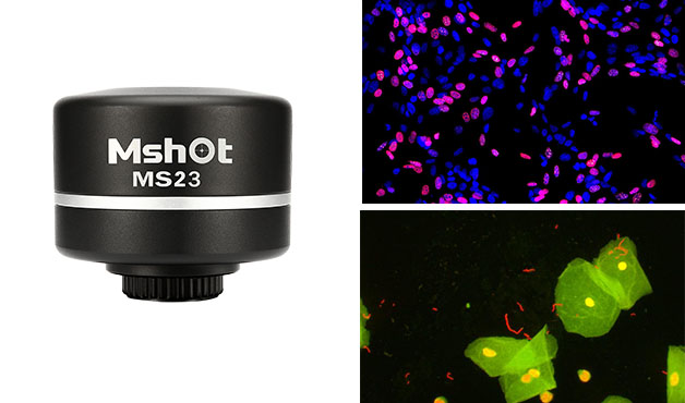 显微镜相机MS23采用230万像素大靶面CMOS传感,像元尺寸达到5.86微米,是FISH等弱荧光成像的推荐产品。
