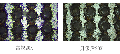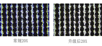 明美倒置金相显微镜MJ42采用优良的无限远光学系统与模块化的功能设计理念,可以方便升级系统,实现偏光观察、暗场观察等功能。除了标配长工作距离平场消色差物镜 ,还可以选配升级后的萤石物镜,色差校正方面比常规物镜有较大的提升。如图: