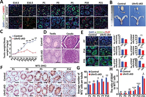 睾丸支持细胞中UHRF1缺失导致小鼠精子发生障碍而不育。