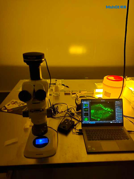 为研究新药,客户需要对成年小鼠做药 物标记,看小鼠的荧光蛋白,并且需要定量检测,全视野拍摄记录研究过程,明美销售工程师建议,采用体视荧光显微镜MZX81来观察,能够更好满足客户需求,达到预想的观察效果。