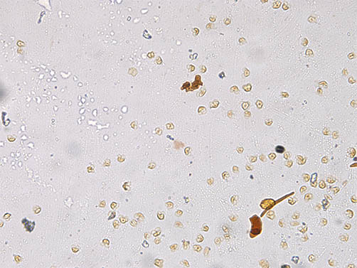 现场由于没有细胞,工程师用倒置荧光显微镜拍摄客户的用植物荧光切片观察,如图: