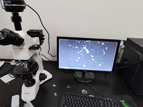淀粉是葡萄糖分子聚合而成的长链化合物,它是细胞中碳水化合物普遍的储藏形式,在细胞中以颗粒状态存在。所有薄壁细胞中都有淀粉粒存在,尤其在各类贮藏器官中更为集中,如种子的胚乳和子叶中,植物的块根、块茎和根状茎中都含有丰富的淀粉粒。此次学校实验用到的设备为明美偏光显微镜。