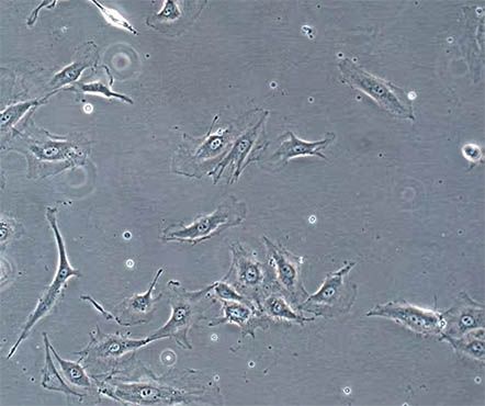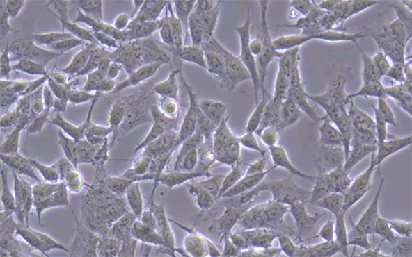 细胞由原培养瓶内分离稀释后传到新的培养瓶中培养的过程称之为传代培养。收到细胞先不开盖,用酒精将整个细胞瓶外壁进行消毒,放在培养箱静置若干小时后(看细胞密度而定)在倒置显微镜下观察细胞生长情况,并对细胞进行不同倍数拍照。