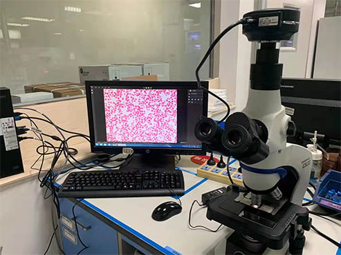 东莞市人民医院选用明美科研级显微镜相机MSX2, 能清晰拍摄不正常的血细胞并进行分析判断。