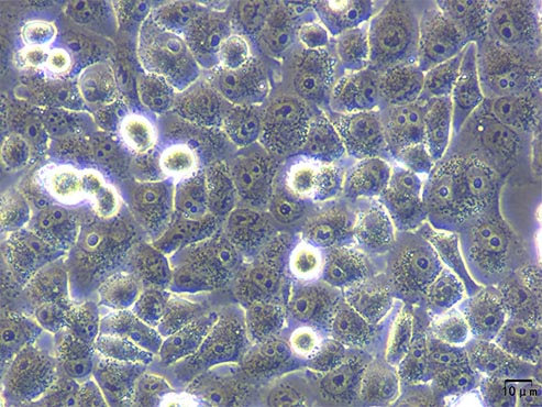 倒置显微镜下的细胞爬片观察
