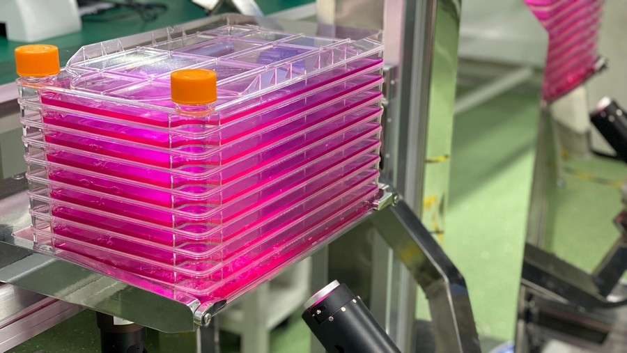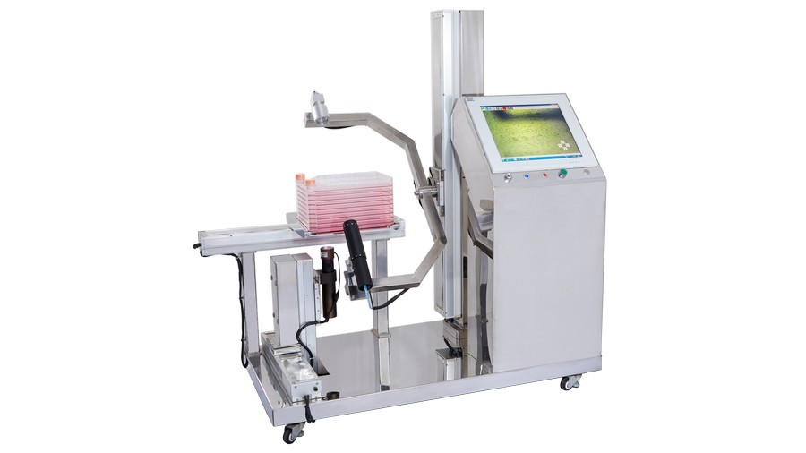 之类设备上自动完成40层细胞工厂的原位观察拍照,大大减低观察评估所需的人力。