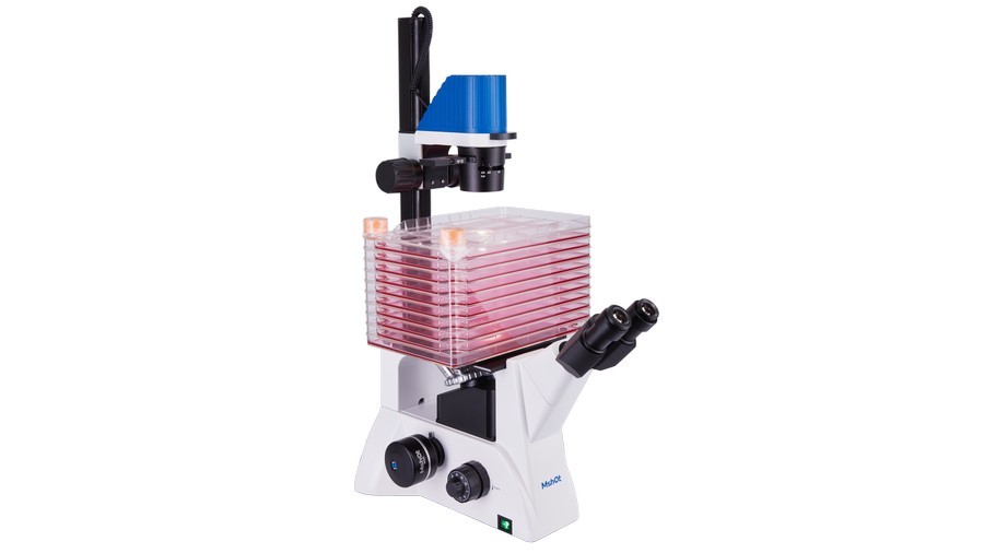 细胞工厂另一优势是便于观察。以往细胞培养很多都要逐个采样,放到多孔培养板上显微观察,非常消耗人力;而细胞工厂形态比较方正,适合机械臂自动化操作,除了可以用细胞工厂显微镜MI52-CF等产品直接观察底下两层,还能放到