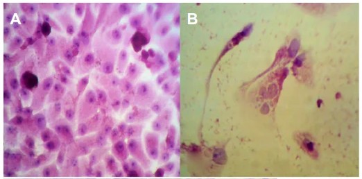 正常VERO细胞 vs 感染病毒后的VERO细胞,PubMed DOI: 10.2147/OV.S59037, Al-Shammari A.M.