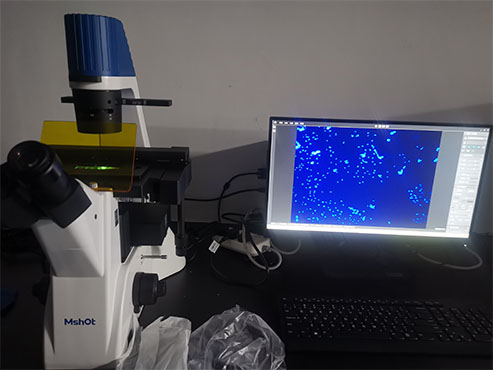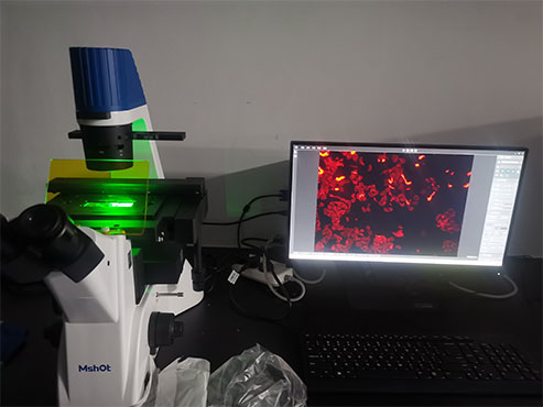 本次实验用到的仪器设备为倒置荧光显微镜MF52-N搭配1250万像素的显微镜相机MSX2,可以较好的记录下样品的标记,老师对比了软件处理后的效果表示十分满意,直接采购。