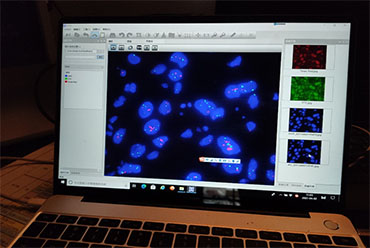 宫颈癌是常见的妇科Malignant tumor,发病率在女性Malignant tumor中排名很高,而且呈上升趋势,针对Tumor的预防,首要的原则是早发现早诊治.因此,在Tumor发展过程中,对细胞遗传学改变的检测,是Tumor早期发现和早诊治的重要手段。FISH技术是细胞原位分子杂交与荧光技术相结合的技术,利用FISH技术可以进行实体瘤中染色体结构异常、染色体数目异常,DNA定位的细胞遗传学研究。FISH技术将细胞遗传学改变细胞类型、位置、组织学结构联系起来,可用于研究遗传物质与Tumor的动态变化之间的关系,有助于早期发现宫颈癌Tumor cell并及时进行诊治。明美的FISH检测系统,研究级正置荧光显微镜MF43-N,配备大功率四通道LED荧光光源,具有发热少,功率大,光源亮度强,寿命长易维护等优点,转盘式荧光切换方便使用者灵活切换荧光,搭配我们的高灵敏度显微镜相机,能够快速的帮您捕捉到荧光信号,再配合我们的FISH软件,能够在很短的时间内帮助您快速的得到检测结果。
