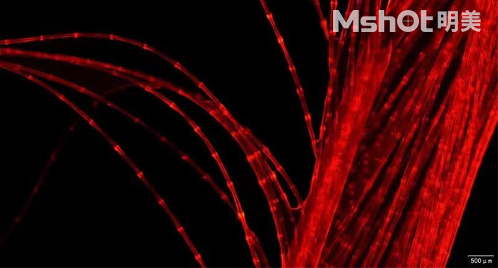 罗丹明染料下耐药纤维管-研究级荧光显微镜MF43-N搭配显微镜相机MDX10拍摄