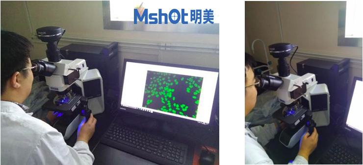 明美自主研发的LED荧光模块及科研级大靶面显微镜相机MSX2走进湖北武汉协和医院,助力免疫荧光检测。因受到显微镜功能单一的限制,医院原有的奥林巴斯生物显微镜无法投入免疫荧光检测中使用。