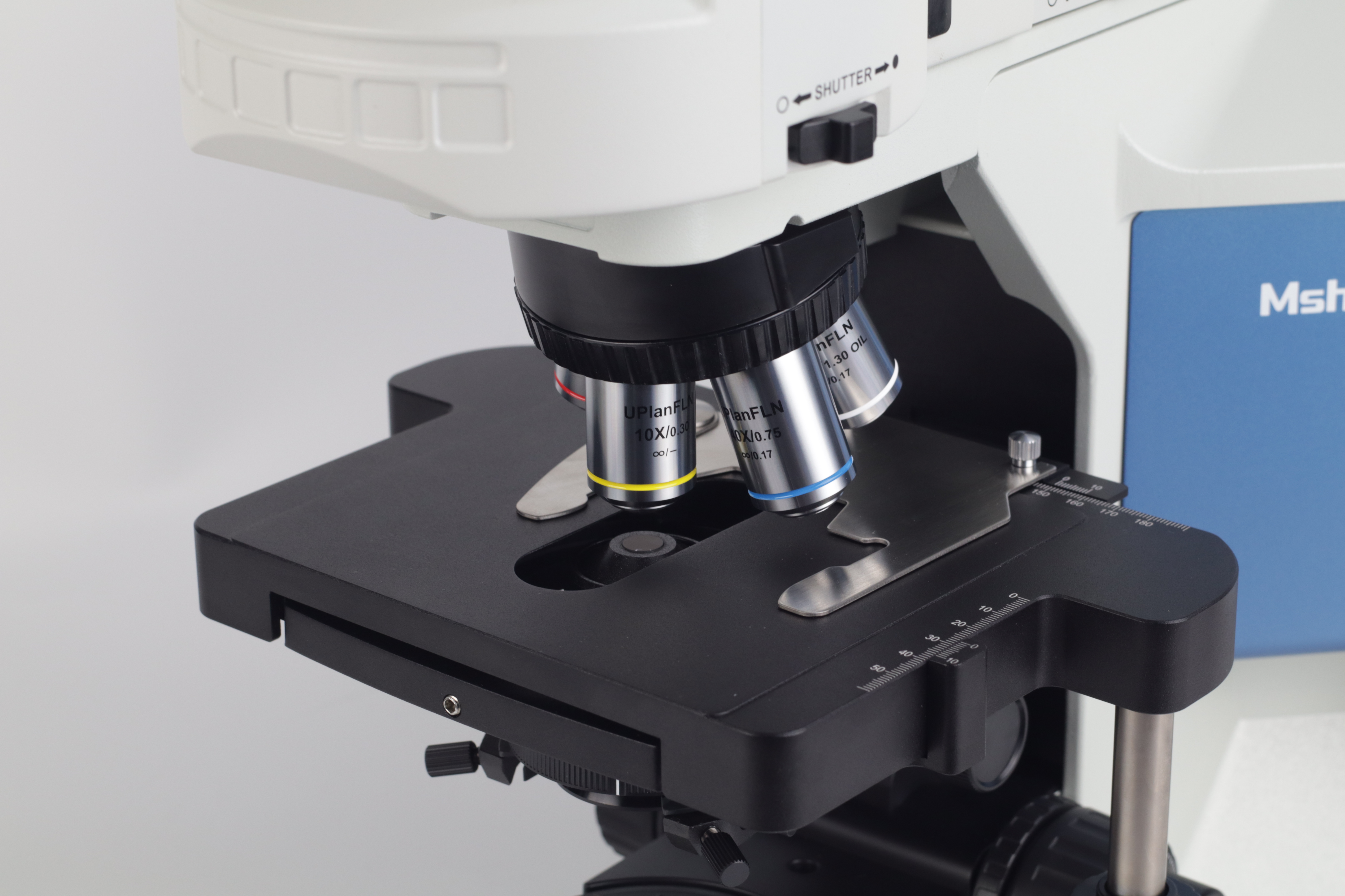 研究级正置荧光显微镜MF43-N配备6孔落射荧光模块和超长寿命LED荧光光源,可扩展升级实现各种观察方式,高数值孔径半复消色差物镜成像清晰,尤其适合FISH荧光原位杂交等应用。