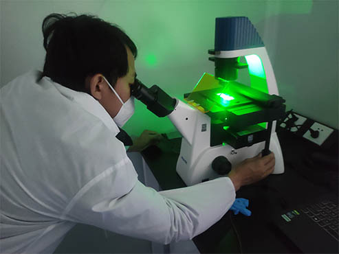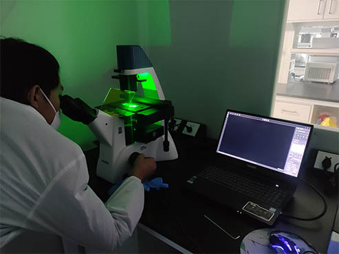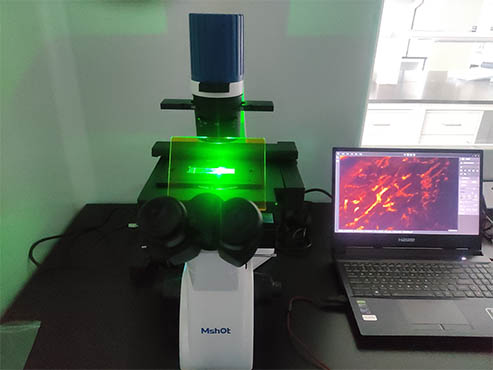 活细胞呈透明型态,一般需要用相衬观察才能看清楚,而如果要看清细胞器等细节,则需要荧光染色,然后用倒置荧光显微镜观察。此次,福建区域安装倒置荧光显微镜MF52-N,以用于染色细胞观察,荧光成像效果好。