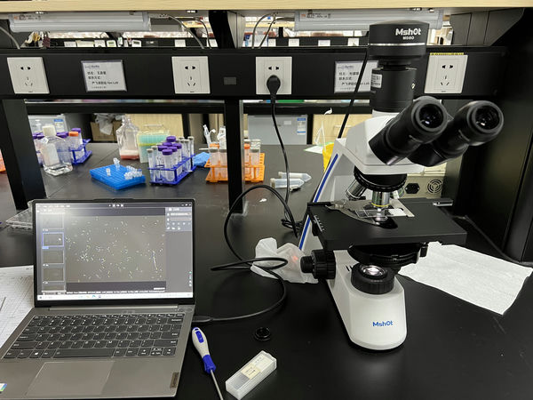 在生物显微镜ML31的相差观察下,可以看到细菌两头有光点,这些光点正是细菌代谢出来的气泡。生物显微镜ML31标配明场成像,可以通过选配相差聚光镜和相差物镜实现相差观察,还可扩展为暗场、荧光等多功能观察。