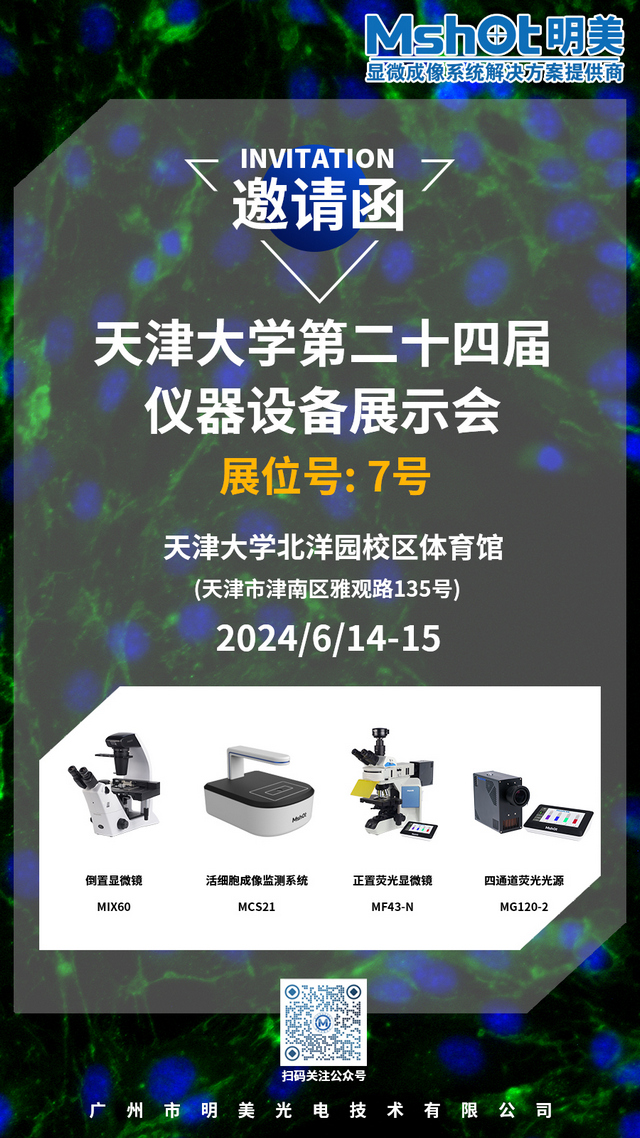 天津大学第二十四届仪器设备展示会将于2024年6月14-15日在天津大学北洋园校区体育馆举行,Mshot明美将携正置荧光显微镜MF43-N、活细胞成像监测系统MCS21、倒置显微镜MIX60、四通道荧光光源MG-120-2等重磅产品亮相本届大会,欢迎莅临展位参观指导。