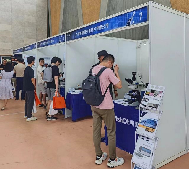 在展会现场,专业人士们纷纷围绕这些先进仪器进行交流与探讨。明美工程师为观众提供详细的产品解答和技术支持。