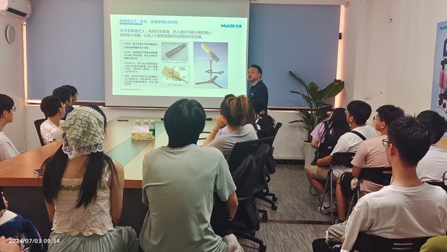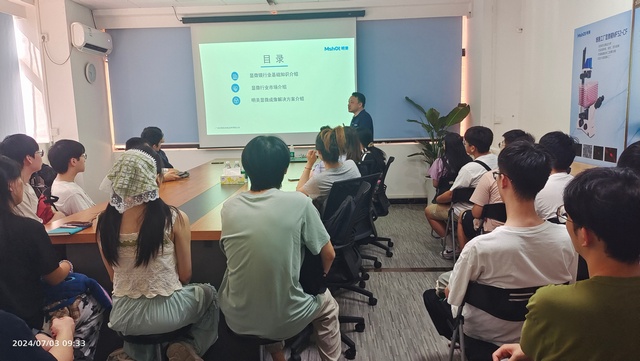 活动伊始,明美市场部负责人以饱满的热情和专业的视角,为同学们揭开了显微镜行业的神秘面纱。从显微镜的基本原理、发展历程,到当前市场的最新动态与趋势,每一个细节都让同学们听得津津有味,仿佛置身于一场科技与文化的盛宴。