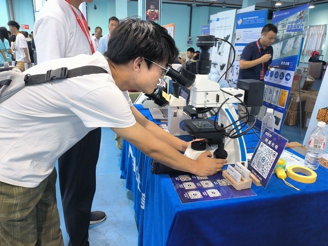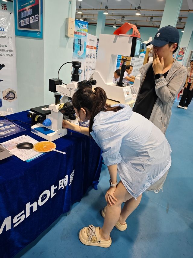 在这场技术与智慧的盛宴中,MSHOT明美携科研级金相显微镜MJ43、倒置金相显微镜MJ41以及正置金相显微镜MJ31惊艳亮相,成为展位上一道亮丽的风景线,吸引了众多参赛师生前来体验,并给与了高度评价。