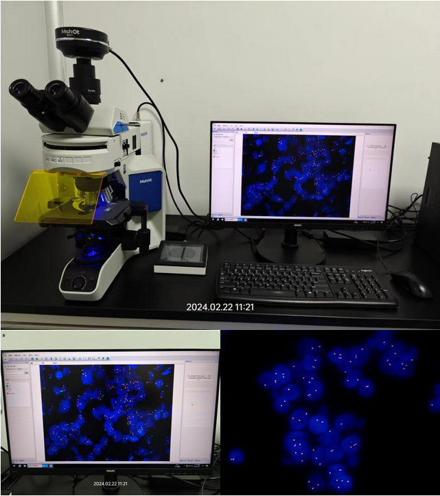 实验主要使用明美研究级显微镜MF43-N和FISH荧光原位杂交分析系统进行,荧光显微镜用于荧光激发和放大FISH样品的信号点,FISH荧光原位杂交分析系统可对荧光显微图像进行捕捉和处理。