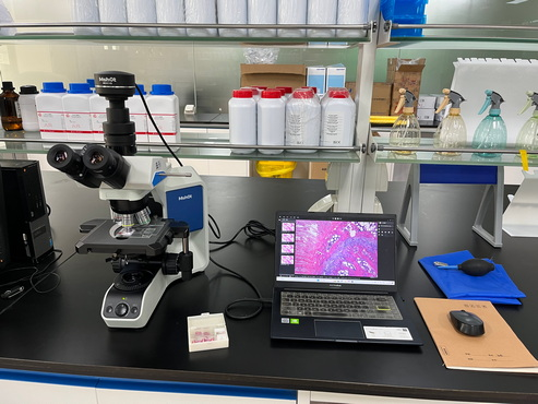 生物显微镜ML51-N采用无穷远消色差独立校正光学系统及高数值孔径半复消色差物镜,观察样品真实清晰,保证了采集图像的锐度、清晰度和色彩还原性,为数字成像提供了高质量和高性能的成像解决方案。此次,因现场无样品,使用工程师自带椎间盘HE染色切片测试拍摄效果,观察样品真实清晰。