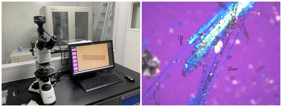 实验综合使用X射线衍射仪和明美 偏光显微镜MP41进行,X射线衍射仪负责测定是否含有某种石棉,偏光显微镜用于验证已认定含石棉的样品中石棉是否为纤维状,因为构成生物安全风险的主要是纤维状石棉。