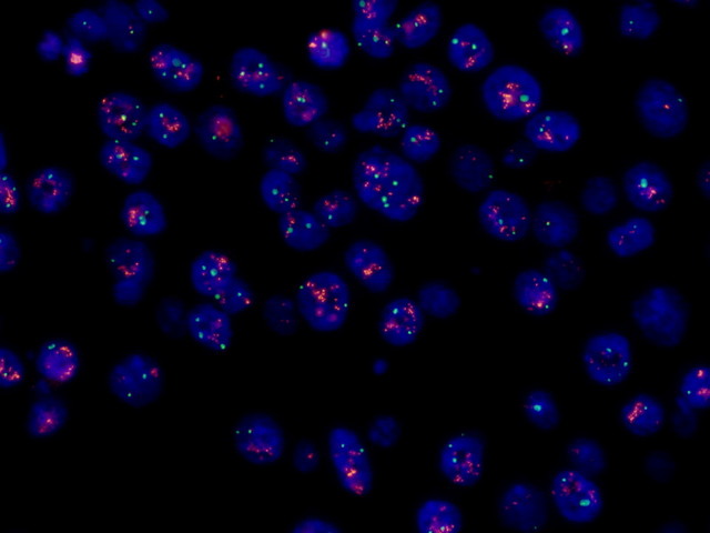 ②医疗诊断:原位荧光杂交技术(FISH)HER-2检测癌症、呼吸道病毒检测、真菌镜检等。