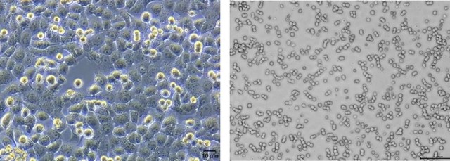 左图:贴壁细胞;右图:悬浮细胞