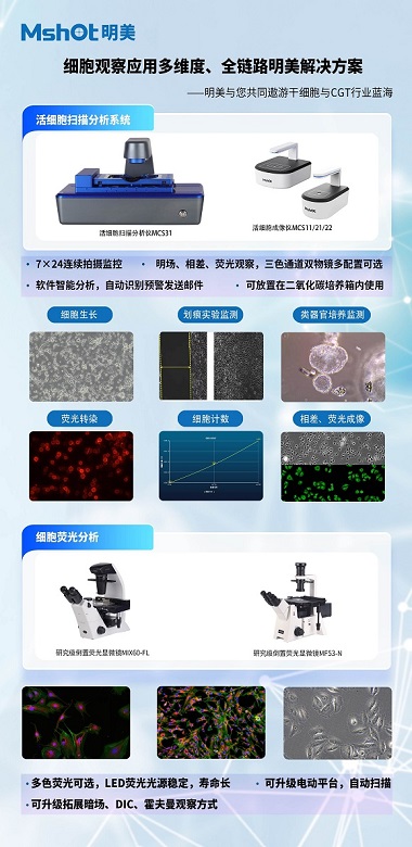在展会现场,干细胞的研究与应用成为大家热议的焦点。干细胞作为生物医学领域的前沿方向,其在再生医学、疾病治疗、药物研发等方面展现出巨大的潜力。明美光电的产品在干细胞研究中也发挥着重要作用。