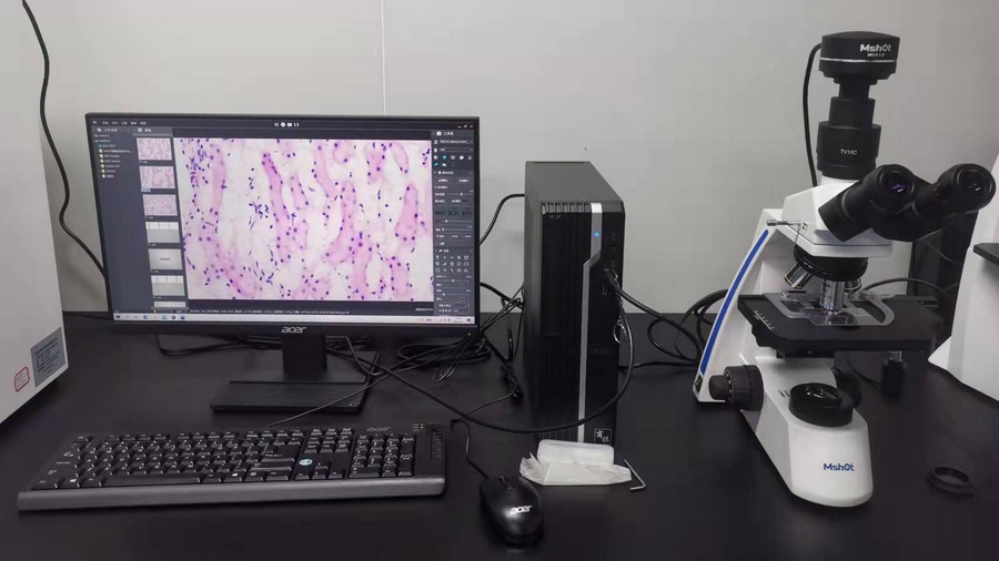 要观察肝脏病理,一般使用ML31等正置的生物显微镜,标配4X/10X/40X/100X四个不同倍率物镜,满足普通病理切片到血涂片、细菌涂片的观察需要。