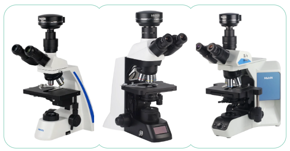 生物显微镜ML31:无限远光学系统,40x-1000X放大,平场消色差物镜,可升级相差、暗场、简易偏光和荧光观察。