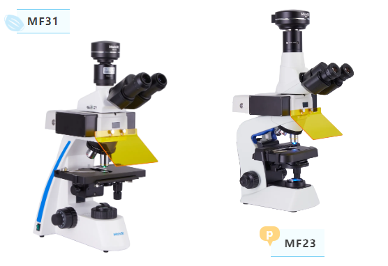 正置荧光显微镜MF31/MF23:采用无限远平场消色差物镜,40x-1000X放大,可用双目或三目观察,搭配LED荧光激发装置,实现明场和荧光显微观察