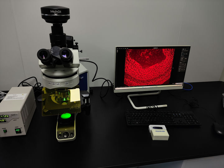 荧光原位杂交技术,其原理基于碱基互补配对的原则,通过对组织样品特殊处理使带有荧光物质的探针与目标DNA接合,最后用MF43-N等正置荧光显微镜高倍放大直接观察目标DNA所在的位置,该技术广泛应用于肿瘤病理诊断、基因定位、染色体研究等领域。