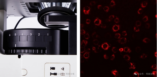 荧光观察是细胞免疫荧光研究的核心环节。MF53-M显微镜配备了6孔转盘式荧光模块,最多支持6通道荧光观察。这一设计不仅提高了实验效率,更使得科研人员能够在同一设备上捕捉到多种荧光信号,从而更全面地分析细胞内部的相互作用和分子机制。