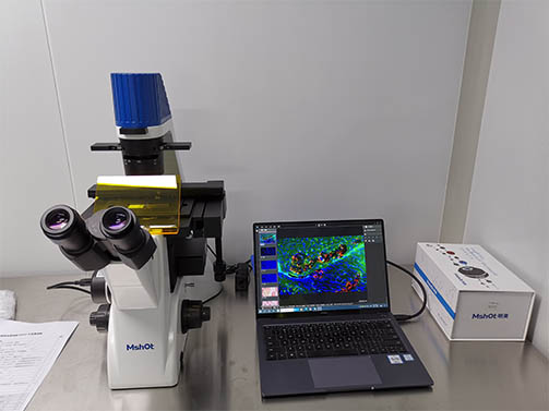 明美工程师给老师推荐了高性价比的倒置荧光显微镜MF52-N,搭配高灵敏度显微镜相机MS23,明美倒置荧光显微镜MF52-N由LED落射荧光显微系统与倒置生物显微系统组成,采用优良的无限远光学系统,配置长工作距离平场物镜与大视野目镜。