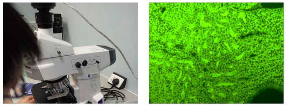 根据上述光学显微镜对病毒的检测方式,主要有两种方式,一是使用荧光显微镜检测荧光染料标记病毒本身的荧光信号或入侵细胞免疫反应产生抗体物质荧光信号,二是使用明场方式观测IHC或者HE染色的细胞或组织的病理形态。