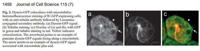 细胞内细胞器的定位、迁移和胞内物质运输,依赖于马达蛋白和微管(Microtubule,简称MT)的相互作用,前者相当于“车辆”,而后者相当于“高速公路”。2013年詹姆斯·罗斯曼、兰迪·谢克曼和托马斯·聚德霍夫3位科学家因发现细胞中囊泡转运机制,获得了2013年诺贝尔生理学或医学奖。