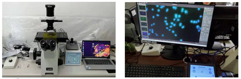 (2) 研究级解决方案:电动XYZ倒置荧光显微镜MF53-N + 高灵敏相机MC50-S/MS23 或 研究级相机MSH12/MSH05