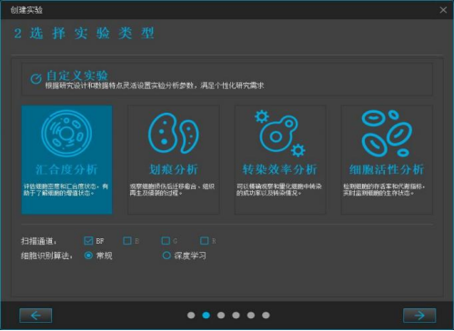 用户可根据实验需求,创建不同的实验类型,系统预设扫描参数。