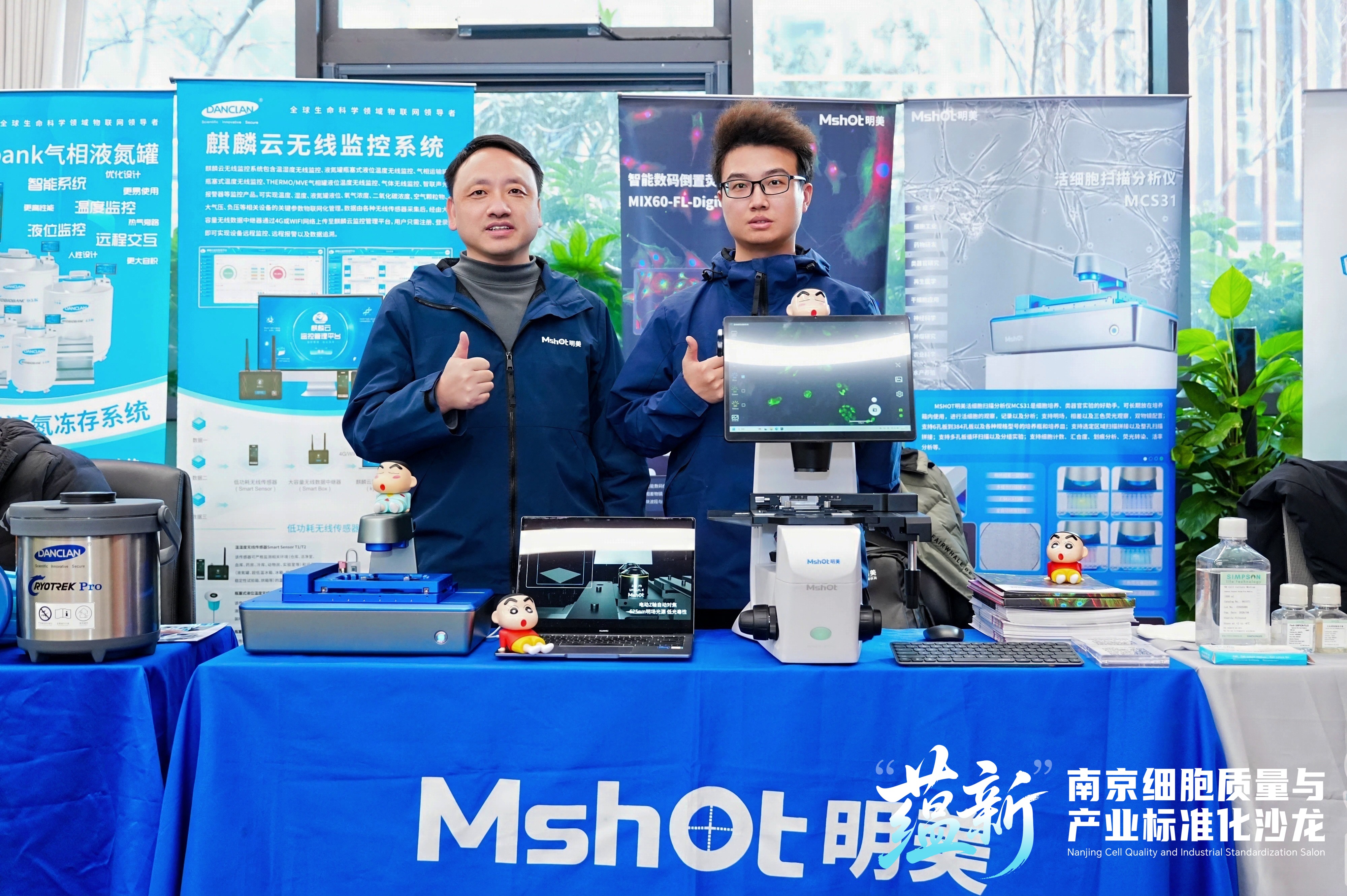 作为本次沙龙的协办方之一,明美光电在现场设立的展位吸引了大量与会专家、学者与企业代表的驻足。会议茶歇及交流时段,众多老师与行业同仁来到明美光电展区,亲自体验、咨询两款活细胞成像解决方案,并就其在细胞治疗研发与质控中的实际应用进行了深入探讨。