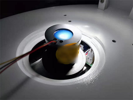 在获得荧光屏亮点图像后,我们可以通过测量疵点的尺寸与数目,对比国家标准的限定值来判断该荧光屏是否合格。后续还可以从软件中得到每个像素点的灰度值,然后通过双峰阀值法得到灰度阀值从而对图像进行二值化,自动测量等一系列的操作,形成一套完整的微光像增强器荧光屏疵点检测系统。