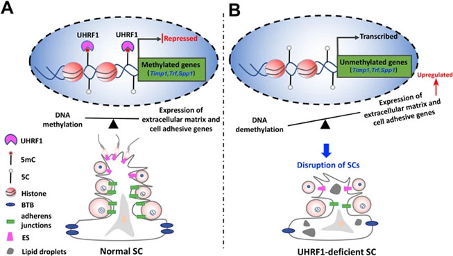 睾丸支持细胞中UHRF1缺失导致小鼠精子发生障碍而不育。