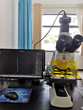 湘潭市一医院此次用到明美荧光显微镜MF23搭配显微镜相机,荧光显微镜MF23采用无限远平场消色差物镜和大视野目镜,可用双目或三目观察,搭配LED荧光激发装置,实现明场和荧光显微镜观察,供临床试验室利用显微放大原理观察微小细胞、组织等样本用。